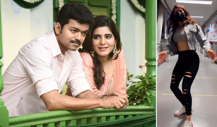 ভারতের দক্ষিণী সিনেমার জনপ্রিয় অভিনেতা থালাপাতি বিজয়। ‘বিস্ট’ সিনেমায় পূজা হেগড়েরর সঙ্গে জুটি বেঁধে অভিনয় করেছেন তিনি। এ সিনেমার জন্য আরবি ভাষার ‘কুথু’ গানটি ‘হালামাথি হাবিবি’ শিরোনামে তৈরি করা হয়েছে। কয়েক দিন আগে মুক্তি পেয়েছে এটি। মুক্তির পর থেকে নেটদুনিয়ায় উত্তাপ ছড়াচ্ছে গানটি। চার দিনে গানটির ভিউ দাঁড়ায় ৪৮ মিলিয়ন। এদিকে ‘হালামাথি হাবিবি’ গানে মজেছেন দক্ষিণী সিনেমার আরেক জনপ্রিয় অভিনেত্রী সামান্থা রুথ প্রভু। গত গত বৃহস্পতিবার রাতে এয়ারপোর্টে বিজয় অভিনীত এ গানে নাচতে আরম্ভ করেন সামান্থা। বিজয়ের নাচের সব স্টেপে ঠিকঠাকমতো পারফরর্ম করেন তিনি। আর সেই ভিডিও নিজের সোশ্যাল মিডিয়ায় পোস্ট করে এ অভিনেত্রী লিখেন, ‘শুধু আরেকটি গভীর রাতের ফ্লাইট নাৃ। আজ রাতের জন্য ছন্দ হয়ে থাক।’ এরপর ভিডিওটি দ্রুত ছড়িয়ে পড়ে ইন্টারনেটে। যা এখন রীতিমতো ভাইরাল। ‘বিস্ট’ সিনেমায় বিজয়ের বিপরীতে অভিনয় করছেন পূজা হেগড়ে। এছাড়াও অভিনয় করছেনÑভিটিভি গণেষ, অপর্ণা দাস, যোগী বাবু, লিলিপুট ফারুকী, অঙ্কুর অজিত প্রমুখ। সান পিকচার্সের ব্যানারে নির্মিত হচ্ছে তামিল ভাষার অ্যাকশন-ড্রামা ঘরানার এই সিনেমা। আগামী ১৪ এপ্রিল সিনেমাটি মুক্তি পাওয়ার কথা রয়েছে। সম্প্রতি আল্লু অর্জুনের ‘পুষ্পা: দ্য রাইজ’ সিনেমার আইটেম গানে দেখা গেছে সামান্থাকে। বর্তমানে তার ঝুলিতে একাধিক সিনেমার কাজ রয়েছে। মিথোলোজি ঘরানার ‘শকুন্তলাম’ সিনেমার শুটিং শেষ করেছেন। এটি পরিচালনা করছেন গুণাশেখর। এ ছাড়া বিগনেশ শিবান পরিচালিত ‘কাতুবাকুলা রেন্ডু কাদাল’ সিনেমার কাজও শেষ করেছেন এই নায়িকা। জন ফিলিপ পরিচালিত ‘অ্যাগ্রিমেন্টস অব লাভ’ নামে একটি সিনেমায় চুক্তিবদ্ধ হয়েছেন সামান্থা। এতে তাকে উভকামী চরিত্রে দেখা যাবে। পাশাপাশি অভিনেত্রী তাপসী পান্নু প্রযোজিত বলিউডের একটি সিনেমায় অভিনয় করবেন সামান্থা।