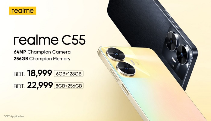 রিয়েলমির এই ফোনের ৬ জিবি র্যাম/১২৮ জিবি রম ভ্যারিয়েন্টটি পাওয়া যাচ্ছে মাত্র ১৮,৯৯৯ টাকায়, এবং ৮ জিবি র্যাম/২৫৬ জিবি রম ভ্যারিয়েন্টটি পাওয়া যাচ্ছে মাত্র ২২,৯৯৯ টাকায় (ভ্যাট প্রযোজ্য)। ব্যবহারকারীদের জন্য স্মুথ ও চ্যাম্পিয়নের মতো অভিজ্ঞতা নিশ্চিত করতে ফোনটির ক্যামেরা, স্টোরেজ, চার্জ ও ডিজাইন – এ চারটি ক্ষেত্রে নিয়ে আসা হয়েছে সেগমেন্ট-সেরা আপগ্রেড। রিয়েলমি সি৫৫ ডিভাইসে রয়েছে প্রাকৃতিক উপাদান থেকে অনুপ্রাণিত সানশাওয়ার ডিজাইন। ফোনটি পাওয়া যাবে সানশাওয়ার ও রেইনি নাইট, এ দু’টি রঙে। মাত্র ৭.৮৯ মিলিমিটারের এই ফোনটি এই সেগমেন্টের সবচেয়ে দৃষ্টিনন্দন ও পাতলা ডিভাইস, যা হাতে নেয়ার পর আরামদায়ক অনুভূতি পাবেন ব্যবহারকারী। ৯০ হার্জ রিফ্রেশ রেট ও হেলিও জি৮৮ চিপসেট-সহ ৬.৭২ ইঞ্চির এফএইচডি+ রেজ্যুলেশনের স্ক্রিনের এই ফোনটি দুর্দান্ত ভিজ্যুয়াল অভিজ্ঞতা নিশ্চিত করবে।