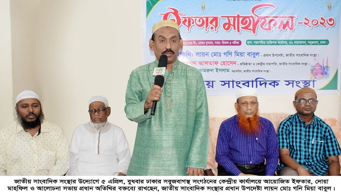 জাতীয় সাংবাদিক সংস্থার উদ্যোগে ৫ এপ্রিল, বুধবার ঢাকার সবুজবাগস্থ সংগঠনের কেন্দ্রীয় কার্যালয়ে আয়োজিত ইফতার, দোয়া মাহফিল ও আলোচনা সভায় প্রধান অতিথির বক্তব্যে তিনি এসব কথা বলেন। তিনি আরো বলেন, ধর্মীয় মূল্যবোধ সম্পন্ন সমাজ প্রতিষ্ঠায় গণমাধ্যমের গুরুত্বপূর্ণ ভূমিকা রয়েছে। এই বিষয়ে গণমাধ্যমকে আরো অধিক সচেষ্ট থাকার জন্যে তিনি আহ্বান জানান।