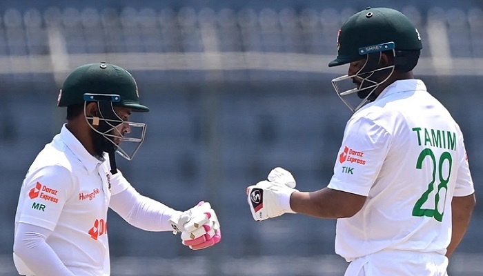 বাংলাদেশের ইনিংসের শুরুটাও তেমন সুখকর হয়নি। প্রথম ওভারেই নাজমুল হোসেন শান্তর উইকেট হারানোর পর ৪০ রানে তিন উইকেট হারায় বাংলাদেশ। এরপর স্বাগতিকদের ব্যাটিং সামলান অধিনায়ক নিজেই। যোগ্য সঙ্গ দিয়েছেন মুশফিক। দুজন মিলে গড়েন ১৫৯ রানের জুটি।