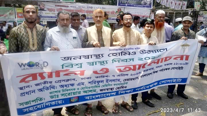 বিশ্ব স্বাস্থ্য দিবস উপলক্ষে আজ ৭ এপ্রিল ২০২৩ জাতীয় প্রেসক্লাবের সামনে জনস্বাস্থ হোমিও’র উদ্যোগে র্যালি ও আলোচনা সভা অনুষ্ঠিত হয়।