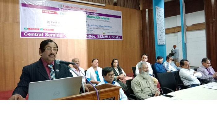 সেমিনারে প্রধান অতিথি হিসেবে বক্তব্য রাখেন মাননীয় উপাচার্য অধ্যাপক ডা. মোঃ শারফুদ্দিন আহমেদ। তিনি এই রোগের বিষয়ে জনসচেতনতা বৃদ্ধি, রোগ প্রতিরোধ ও গবেষণার উপর গুরত্বারোপ করেন। মাননীয় উপাচার্য বলেন, সেপসিসে আক্রান্ত রোগীর ফুসফুস কিডনীসহ বিভিন্ন অঙ্গপ্রত্যঙ্গ অকার্যকর করে দেয়। সেপসিসে মৃত্যুর হার প্রায় ৫০ শতাংশ এবং এই রোগে আক্রান্ত হয়ে যারা আইসিইউতে ভর্তি হয় সেক্ষেত্রে মৃত্যু হার আরো বেশি। এই রোগে আক্রান্ত ব্যক্তিদের মধ্যে শিশু ও বয়স্করা অধিক মৃত্যু ঝুঁকিতে থাকে। তবে সেপসিসে আক্রান্ত ব্যক্তিকে দ্রুত ও যথাযথ চিকিৎসা নিশ্চিত করতে পারলে অনেককে বাঁচানো সম্ভব। রোগ প্রতিরোধের ক্ষেত্রে অবশ্যই গুরুত্ব দিতে হবে। রক্তদূষণ বা রক্তে বিষক্রিয়া সেপসিস বা সেপ্টিসেমিয়া নিয়ে আয়োজিত আজকের এই গুরুত্বপূর্ণ সেমিনার এই রোগে আক্রান্ত রোগীর যথাযথ উন্নত কার্যকরী চিকিৎসা নিশ্চিত করতে বিরাট অবদান রাখবে যা সেপসিসে আক্রান্ত রোগীদের মৃত্যু হার হ্রাসে ভূমিকা রাখবে।