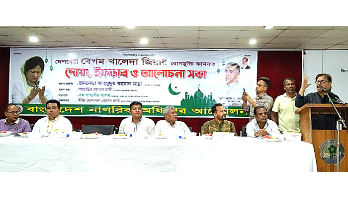 ১৩ এপ্রিল (বৃহস্পতিবার) বাংলাদেশ নাগরিক অধিকার আন্দোলন’র উদ্যোগে ২২/১, তোপখানা রোডস্থ বাংলাদেশ শিশুকল্যাণ পরিষদ মিলনায়তনে “দেশনেত্রী বেগম খালেদা জিয়ার রোগমুক্তি কামনায় দোয়া, ইফতার ও আলোচনা সভা”য় প্রধান অতিথির বক্তব্যে তিনি এ কথা বলেন।