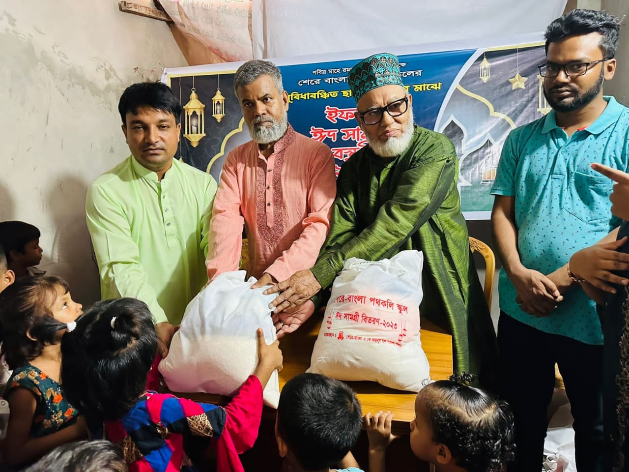 নিজস্ব প্রতিবেদকঃ শেরেবাংলা পথকলি স্কুলের আয়োজনে এবং শেরেবাংলা একে ফজলুল হক গবেষণা পরিষদের সহযোগিতায় ১৭ এপ্রিল ২০২৩ বিকেলে সুবিধা বঞ্চিত শিশুদের মাঝে ঈদ উপহার ও নতুন পোশাক এবং ইফতার বিতারন করা হয়।