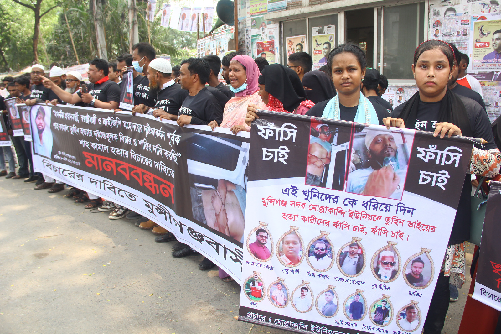 নিজস্ব প্রতিবেদকঃ তরুন মেধাবী ছাত্র শাহ কামাল তুহিনের হত্যাকারী আজাহার ও তার সহযোগীদের বিচার ও দৃষ্টান্তমূলক শাস্তির দাবি করেছেন মুন্সীগঞ্জবাসী। ১৮ এপ্রিল মঙ্গলবার সকালে জাতীয় প্রেসক্লাবে মওলানা আকরাম খাঁ হলে এক সংবাদ সম্মেলনে এ দাবি করা হয়।
