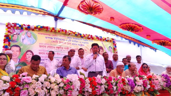 বৃহস্পতিবার (২০ এপ্রিল) দুপুরে নারায়ণগঞ্জের রূপগঞ্জ উপজেলার গুতিয়াবো এলাকায় প্রগতি উচ্চ বিদ্যালয় মাঠে নারায়ণগঞ্জ জেলা পরিষদ থেকে অবকাঠামো উন্নয়ন বাবদ রূপগঞ্জ ইউনিয়নের ৩৬ টি মসজিদ ও মাদ্রাসায় কোটি টাকার চেক প্রদান অনুষ্ঠানে প্রধান অতিথির বক্তব্যে মন্ত্রী এসব কথা বলেন। এসব উন্নয়নমূলক কাজের সার্বিক ব্যবস্থাপনায় রয়েছেন, নারায়ণগঞ্জ জেলা পরিষদের সদস্য মোহাম্মদ আনছার আলী এবং নারায়ণগঞ্জ জেলা পরিষদের সদস্য শিলা রানী পাল।