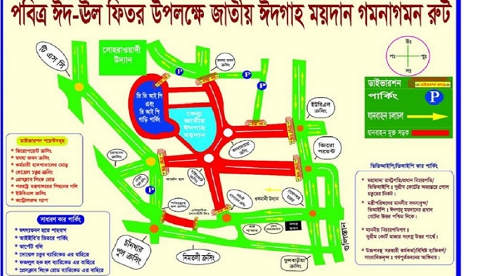 পবিত্র ঈদুল ফিতর উপলক্ষে জাতীয় ঈদগাহ ময়দানে গমনাগমন বিষয়ে ট্রাফিক নির্দেশনা দিয়েছে ঢাকা মেট্রোপলিটন পুলিশের (ডিএমপি) ট্রাফিক রমনা বিভাগ।