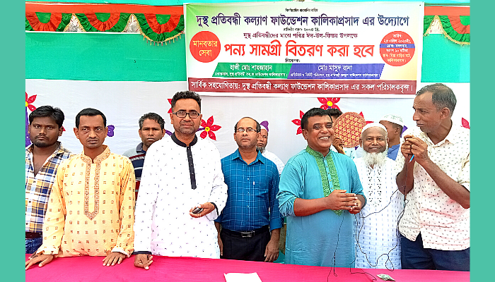 প্রতিবন্ধী কল্যাণ ফাউন্ডেশনের চেয়ারম্যান হাজী মো. শাহজাহান মিয়ার সভাপতিত্বে অনুষ্ঠানে স্বাগত বক্তব্য দেন সংগঠনের প্রতিষ্ঠাতা ও নির্বাহী পরিচালক, কালিকা প্রসাদ ইউনিয়ন আওয়ামীলীগের সাধারণ সম্পাদক মাসুদ রানা।