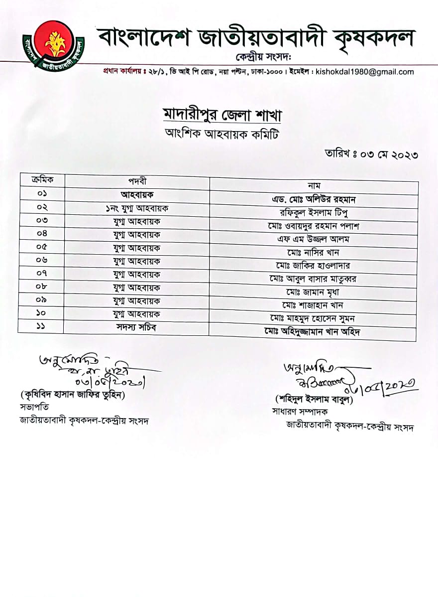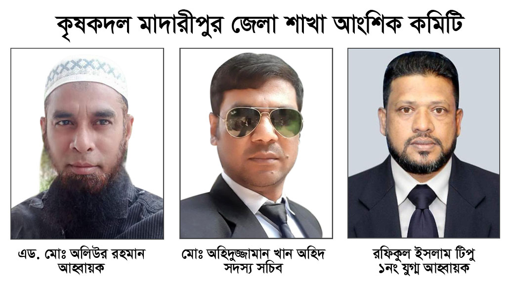 এসময় কৃষকদল কেন্দ্রীয় সংসদের সভাপতি কৃষিবিদ হাসান জাফির তুহিন ও সাধারণ সম্পাদক শহিদুল ইসলাম বাবুল নবগঠিত মাদারীপুর জেলা শাখা কমিটি আগামী দিনের গণতন্ত্র পুনরুদ্ধার আন্দোলনে গুরুত্বপূর্ণ ভূমিকা রাখবে বলে প্রত্যাশা করেন।