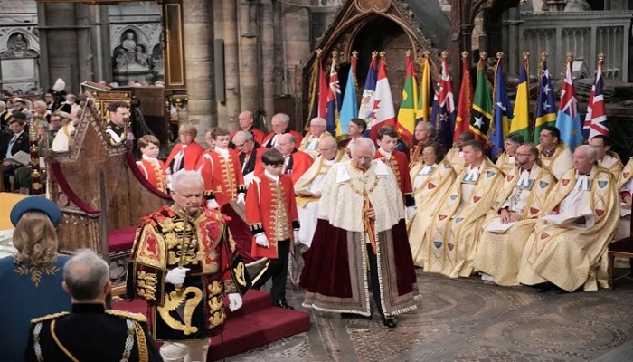 ওয়েস্টমিনস্টার অ্যাবেতে রাজা চার্লসের রাজ্যাভিষেক শপথ অনুষ্ঠান পরিচালনা করেন ক্যান্টারবুরির আর্চবিশপ জাস্টিন ওয়েলবি। এ সময় ওয়েস্টমিনস্টার অ্যাবেতে উপস্থিত ছিলেন কুইন কনসর্ট ক্যামিলা, রাজার বড় ছেলে প্রিন্স উইলিয়াম, ছোট ছেলে প্রিন্স হ্যারি ও রাজপরিবারের অন্য সদস্যরা।