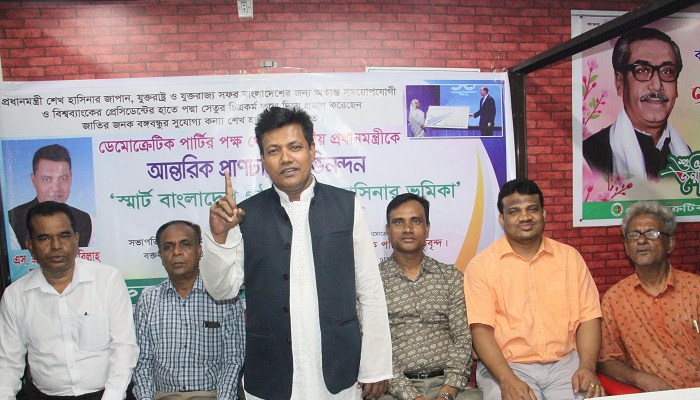 ডেমোক্রেটিক পার্টির আহ্বায়ক তার বক্তব্যে বলেন, জাতির জনক বঙ্গবন্ধুর সুযোগ্য কন্যা মাননীয় প্রধানমন্ত্রী শেখ হাসিনাকে স্মার্ট বাংলাদেশ করতে হলে আগামী দ্বাদশ নির্বাচনকে গ্রহণযোগ্যতা ও সকল দলের অংশগ্রহণের জন্য আপনার উদ্যোগ গ্রহণ করতে হবে। আমরা আশা করি স্বাধীনতার স্বপক্ষের সকল শক্তিকে ঐক্যবদ্ধ হয়ে অশুভ শক্তির বিরুদ্ধে ও জামায়াত ও জঙ্গীবাদের বিরুদ্ধে প্রধানমন্ত্রীকে আরো ভূমিকা পালন করার আহ্বান জানান। আমরা গণতন্ত্রের পক্ষে, আমরা প্রগতির পক্ষে। তাই ১৭ কোটি মানুষকে আপনার নেতৃত্বে উন্নয়নের অগ্রযাত্রাকে এগিয়ে নিয়ে স্মার্ট বাংলাদেশ গড়ার আশা ব্যক্ত করি।