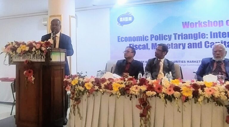 সোমবার (২৮ ফেব্রুয়ারি) রাজধানীর হোটেল পূর্বাণীতে ক্যাপিটাল মার্কেট জার্নালিস্টস ফোরাম (সিএমজেএফ) এবং বাংলাদেশ একাডেমি ফর সিকিউরিটি মার্কেটের (বিএএসএম) যৌথ উদ্যোগে আয়োজিত ‘পুঁজিবাজারে মুদ্রানীতি ও রাজস্ব নীতির প্রভাব’ শীর্ষক কর্মশালায় প্রধান অতিথির বক্তব্যে বিএসইসি চেয়ারম্যান এসব কথা বলেন।