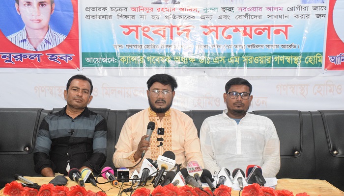ক্যান্সার গবেষক ও ক্যান্সার চিকিৎসক, অধ্যক্ষ ডাঃ এস এম সরওয়ার এর প্রতিষ্ঠান গণস্বাস্থ্য হোমিও দীর্ঘ ২৭ বছর যাবত সুনামের সাথে ক্যান্সার চিকিৎসাসহ বিভিন্ন চিকিৎসা সেবায় কৃতিত্বের সাথে অবদান রেখে আসছেন। তারই ধারাবাহিকতায় ডা. সরওয়ার ও তার প্রতিষ্ঠানের সুনাম নষ্ট করার জন্য একটি প্রতারক চক্র ইস্টান আরজু টাওয়ার (৫ম তলা) বিজয় নগর, ঢাকায় চেম্বার খুলে জনস্বাস্থ্য হোমিও নাম দিয়ে প্রতিষ্ঠান করে রোগী ও রোগীদের অভিভাবকদের সাথে প্রতারণা করছে এবং ডা. সরওয়ারের বিজ্ঞাপণ, ছবি, ভিডিও, স্বাক্ষাৎকার এবং তার কাছ থেকে চিকিৎসা নিয়ে যে সকল রোগী ভালো হয়েছে তাদের স্বাক্ষাৎকার, পত্র-পত্রিকা, ইউটিউব, ফেসবুকে, অনলাইনে, ভিডিওতে প্রতারকদের মোবাইল নাম্বার ব্যবহার করে রোগী এনে প্রতারণা করছেন।