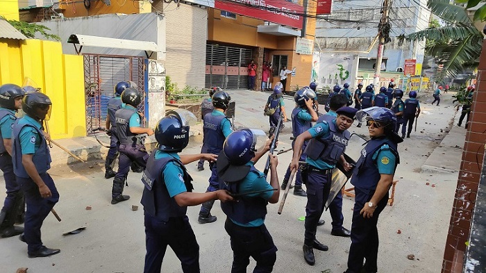 খুলনায় পুলিশের সঙ্গে বিএনপির নেতাকর্মীদের ধাওয়া পাল্টা ধাওয়া ও সংঘর্ষের ঘটনা ঘটেছে।