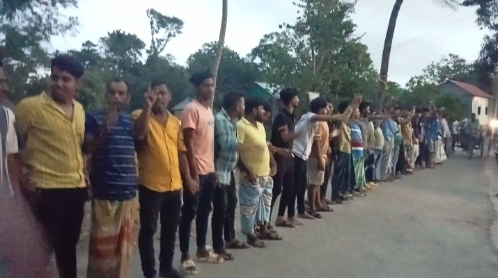 রবিবার বিকেলে উপজেলার বাঁশগাড়ি বাগানের সামনে এ মানববন্ধন ও বিক্ষোভ মিছিল অনুষ্ঠিত হয়েছে।