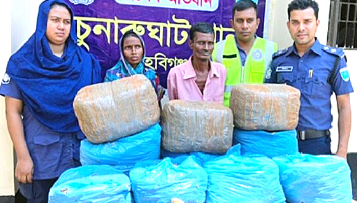হবিগঞ্জ জেলা প্রতিনিধি: হবিগঞ্জের চুনারুঘাটে পৃথক অভিযানে ৫০ কেজি গাঁজাসহ স্বামী-স্ত্রী এবং অপর দুইজসহ ৪ জন গ্রেপ্তার হয়েছে।