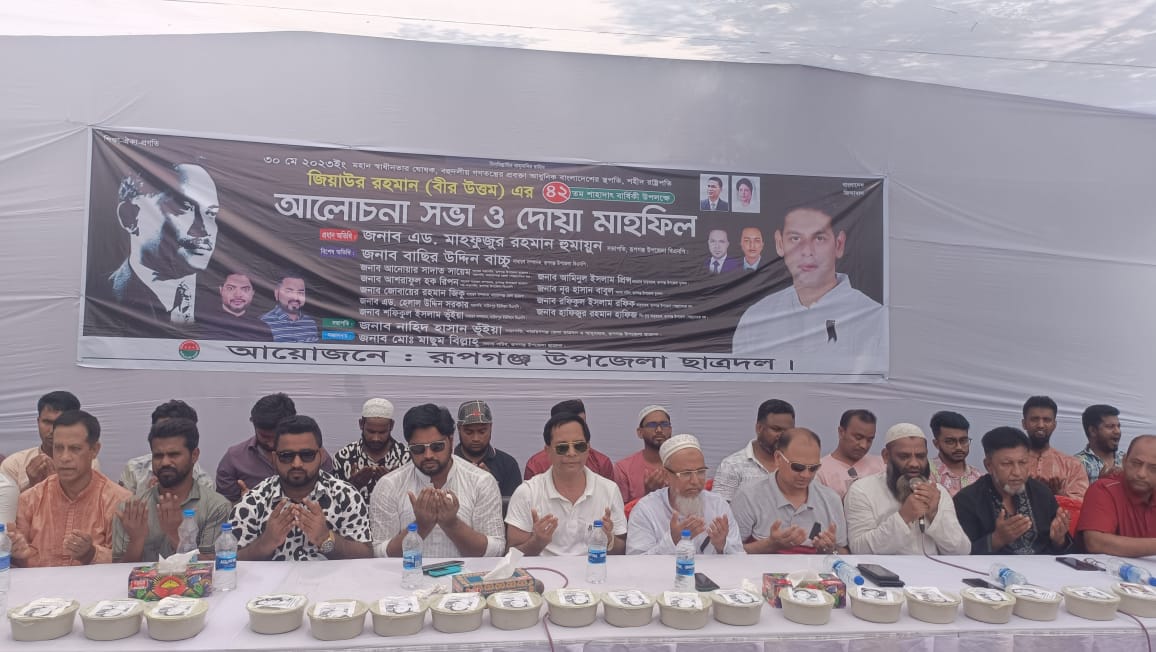 রূপগঞ্জ প্রতিনিধি ঃ নারায়ণগঞ্জের রূপগঞ্জে শহিদ রাষ্ট্রপ্রতি জিয়াউর রহমানের ৪২ তম শাহাদাৎ বার্ষিকী উপলক্ষে রূপগঞ্জ উপজেলা ছাত্রদলের উদ্যোগে আলোচনা সভা ও দোয়া মাহফিল অনুষ্ঠিত হয়েছে।