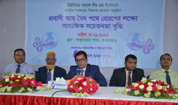 নিজস্ব প্রতিবেদকঃ সম্প্রতি কক্সবাজারে শরী‘আহ ভিত্তিক ইউনিয়ন ব্যাংক লিমিটেড এর ফাইন্যান্সিয়াল লিটারেসি উইং কর্তৃক আয়োজিত “প্রবাসী আয় বৈধ পথে প্রেরণের লক্ষ্যে সামাজিক সচেতনতা বৃদ্ধি” শীর্ষক আর্থিক স্বাক্ষরতা বিষয়ক প্রচারণা অনুষ্ঠান অনুষ্ঠিত হয়েছে।