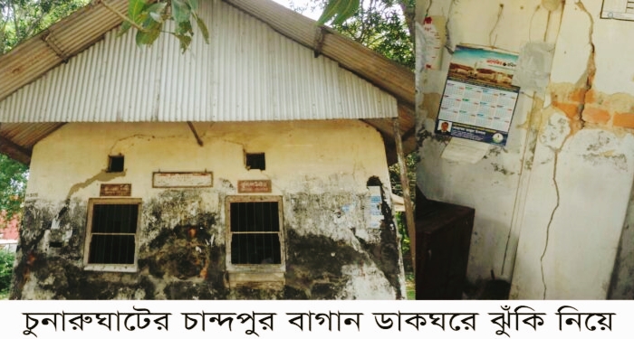 হবিগঞ্জ জেলা প্রতিনিধি: হবিগঞ্জের চুনারুঘাট উপজেলার চান্দপুর বাগান সাব-ডাকঘরটি সীমাহীন সমস্যায় জর্জরিত। ব্রিটিশ আমলে নির্মিত ডাকঘরটি প্রতিষ্ঠার পর আর কোন উন্নয়নের ছোয়া লাগেনি। বর্তমানে ডাকঘরটির চারপাশের দরজা-জানালা নড়বড়ে হয়ে পড়েছে। দেয়ালের প্রায় জায়গায় বড় বড় ফাটল ধরেছে। উপরের টিন ছুয়ে পানি পড়ে অফিসের মূল্যবান কাগজপত্র নষ্ট হয়ে যাচ্ছে। অফিসটিতে ৩ জন কর্মচারী কাজ করলেও তারা সারাক্ষণ তটস্থ অবস্থায় থাকেন। কারণ যে কোন সময় ডাকঘরটি ধ্বসে পড়তে পারে।