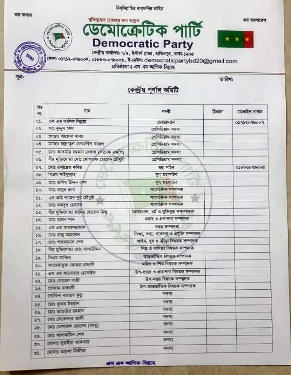 সভাপতির বক্তব্যে এস এম আশিক বিল্লাহ বলেন,‘‘ আজকে ত্রি-বার্ষিক সম্মেলনের মাধ্যমে ডেমোক্রেটিক পার্টির আত্মপ্রকাশ হয়েছে। আমি অনুষ্ঠানের প্রধান আলোচক ও বিশেষ অতিথিসহ আলোচনা সভায় অংশগ্রহণ করার জন্য আমি জাতীয় পর্যায়ের নেতাদের প্রতি কৃজ্ঞতা প্রকাশ করছি। বঙ্গবন্ধু আমাদের জাতির পিতা ও বাংলাদেশ রাষ্ট্রের স্থপতি। প্রধানমন্ত্রী শেখ হাসিনাকে গণমূখী বাজেটের জন্য আমরা ডেমোক্রেটিক পার্টির পক্ষ থেকে সমর্থন ও অভিনন্দন জানাচ্ছি।