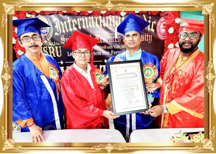 নিজস্ব প্রতিবেদকঃ ভারতের বৈদিক যোগ পীঠ টাষ্ট্র কর্তৃক প্রতিষ্ঠিত ঐতিহ্যবাহী ইন্টারন্যাশনাল বৈদিক স্প্রিচুয়ালিটি এন্ড রিসার্চ ইউনিভার্সিটি আন্তর্জাতিক যোগ দিবস ২০২৩ উপলক্ষে গত ০৫ জুন বিশেষ সমাবর্তন অনুষ্ঠানে শংকর ওয়েলফেয়ার ফাউন্ডেশনের প্রতিষ্ঠাতা চেয়ারম্যান এবং আনন্দ যোগ ও ওয়েলনেস ইনস্টিটিউটের প্রতিষ্ঠাতা সাধারণ সম্পাদক, সাবেক ছাত্রনেতা ও সমাজকর্মী যোগাচার্য ড. শংকর তালুকদারকে সন্মান সূচক ডক্টর অব ইয়োগা এন্ড স্প্রিচুয়ালিটি (Ph.D)-২০২৩ প্রদান করেন।