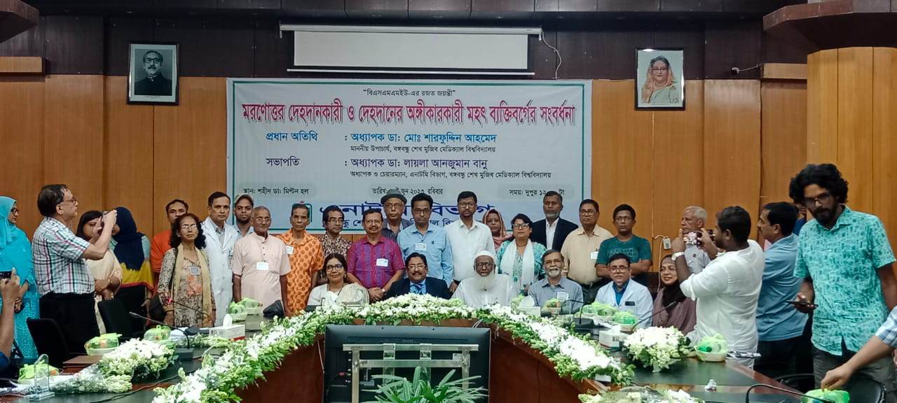 মাননীয় উপাচার্য অধ্যাপক ডা. মোঃ শারফুদ্দিন আহমেদ এর নেতৃত্বে বিশ্ববিদ্যালয়ের প্রক্টর ও বিশিষ্ট ইউরোলজিস্ট, রেনাল ট্রান্সপ্ল্যান্ট সার্জন অধ্যাপক ডা. মোঃ হাবিবুর রহমান দুলাল এবং বিশ্ববিদ্যালয়ের এনাটমি বিভাগের চেয়ারম্যান অধ্যাপক ডা. লায়লা আঞ্জুমান বানুর নিরলস প্রচেষ্টা, শ্রম, প্রজ্ঞাময় ধ্যান, জ্ঞান, কর্মতৎপরতা বাংলাদেশে মরণোত্তর দেহদান কার্যক্রম, কর্ণিয়া দানে মানুষের উৎসাহ সৃষ্টি এবং ক্যাডাভেরিক ট্রান্সপ্ল্যান্ট কার্যক্রমে নতুন মাত্রা যোগ হয়েছে। মরণোত্তর দেহদানে মানুষের মধ্যে ব্যাপক উৎসাহ, আগ্রহ পরিলক্ষিত হচ্ছে। একই সাথে ব্রেনডেথ রোগীর অঙ্গদানের মাধ্যমে সফলভাবে ক্যাডাভেরিক ট্রান্সপ্ল্যান্ট কার্যক্রম সম্পন্ন করায় দেশে চিকিৎসা বিজ্ঞানের ইতিহাসে যোগ হয়েছে নতুন মাইলফলক।