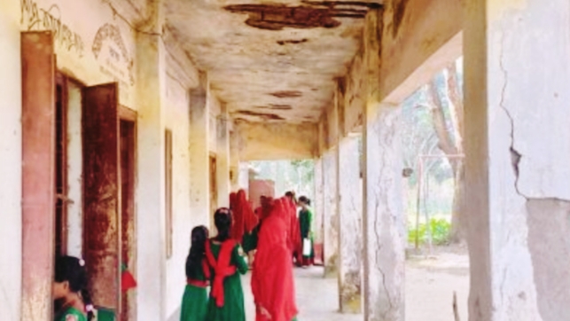 পাঠদান চালু রাখার স্বার্থে ঝুঁকি নিয়েই ভবনের চারটি কক্ষের একটিতে শিশু শ্রেণি, একটিতে দ্বিতীয় ও অপর ভবনে তৃতীয়, চতুর্থ ও পঞ্চম শ্রেণির পাঠদান চলছে। এর একটি কক্ষে অফিস ও আরেকটি গুদাম হিসেবে ব্যবহৃত হচ্ছে। চার কক্ষবিশিষ্ট একাডেমিক ভবনের চারটি কক্ষের প্রায় সবক’টি কক্ষের দেয়ালে ফাটল ধরেছে। প্রধান শিক্ষক জানান, সম্প্রতি পাঠদান চলাকালে ভবনটির ছাদ থেকে পলেস্তারা খসে পড়ে। কেউ হতাহত না হলেও এ ঘটনায় আতঙ্ক সৃষ্টি হয় এক ছাত্রী জানায়, বৃষ্টির সময় ছাদ থেকে পানি পড়ে বই-খাতা ভিজে যায়। ক্লাসের মেঝেতে পানি জমে থাকে। প্রায়ই পলেস্তারা খসে পড়ে। স্কুলে আসতে তাই ভয় হয়। স্থানীয় বাসিন্দারা জানান, সংস্কার না করে ঝুঁকিপূর্ণ ভবনে বিদ্যালয়ের শিক্ষা কার্যক্রম চালিয়ে রাখা সম্ভব নয়। যে কোনো সময় বড় দুর্ঘটনা ঘটতে পারে। এ বিষয়ে ঊর্ধ্বতন কর্তৃপক্ষকে একাধিকবার অবহিত করা হয়েছে ইউএনও সিদ্ধার্থ ভৌমিক জানান।
