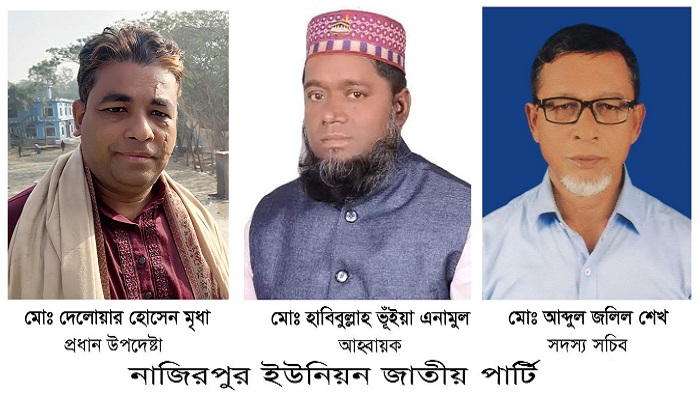 নাজিরপুর ইউনিয়ন জাতীয় পার্টি আহ্বায়ক কমিটির প্রধান উপদেষ্টা মনোনীত হয়েছেন মোঃ দেলোয়ার হোসেন মৃধা। কমিটির আহ্বায়ক মোঃ হাবিবুল্লাহ ভূঁইয়া এনামুল ও সদস্য সচিব মোঃ আবদুল জলিল শেখ।