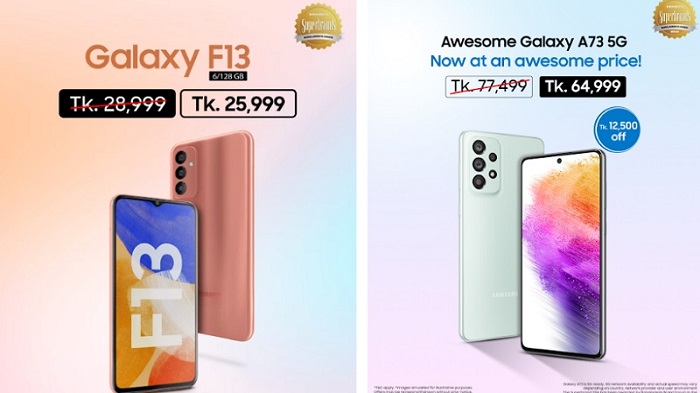 নিজস্ব প্রতিবেদক: গ্যালাক্সি আনপ্যাকড ২০২৩ এর আনন্দকে বাড়িয়ে তুলতে স্যামসাং বাংলাদেশ’র জনপ্রিয় দু’টি স্মার্টফোন – গ্যালাক্সি এফ১৩ ও গ্যালাক্সি এ৭৩ এ দুর্দান্ত ছাড় নিয়ে এসেছে। ক্রেতারা এখন ২৮,৯৯৯ টাকার বদলে ২৫,৯৯৯ টাকা দিয়ে গ্যালাক্সি এফ১৩ এবং ৭৭,৪৯৯ টাকার পরিবর্তে ৬৪,৯৯৯ টাকা গ্যালাক্সি এ৭৩ কিনতে পারবেন। পরবর্তী কোনো ঘোষণার আগ পর্যন্ত এ ছাড় সুবিধা উপভোগ করতে পারবেন ক্রেতারা।