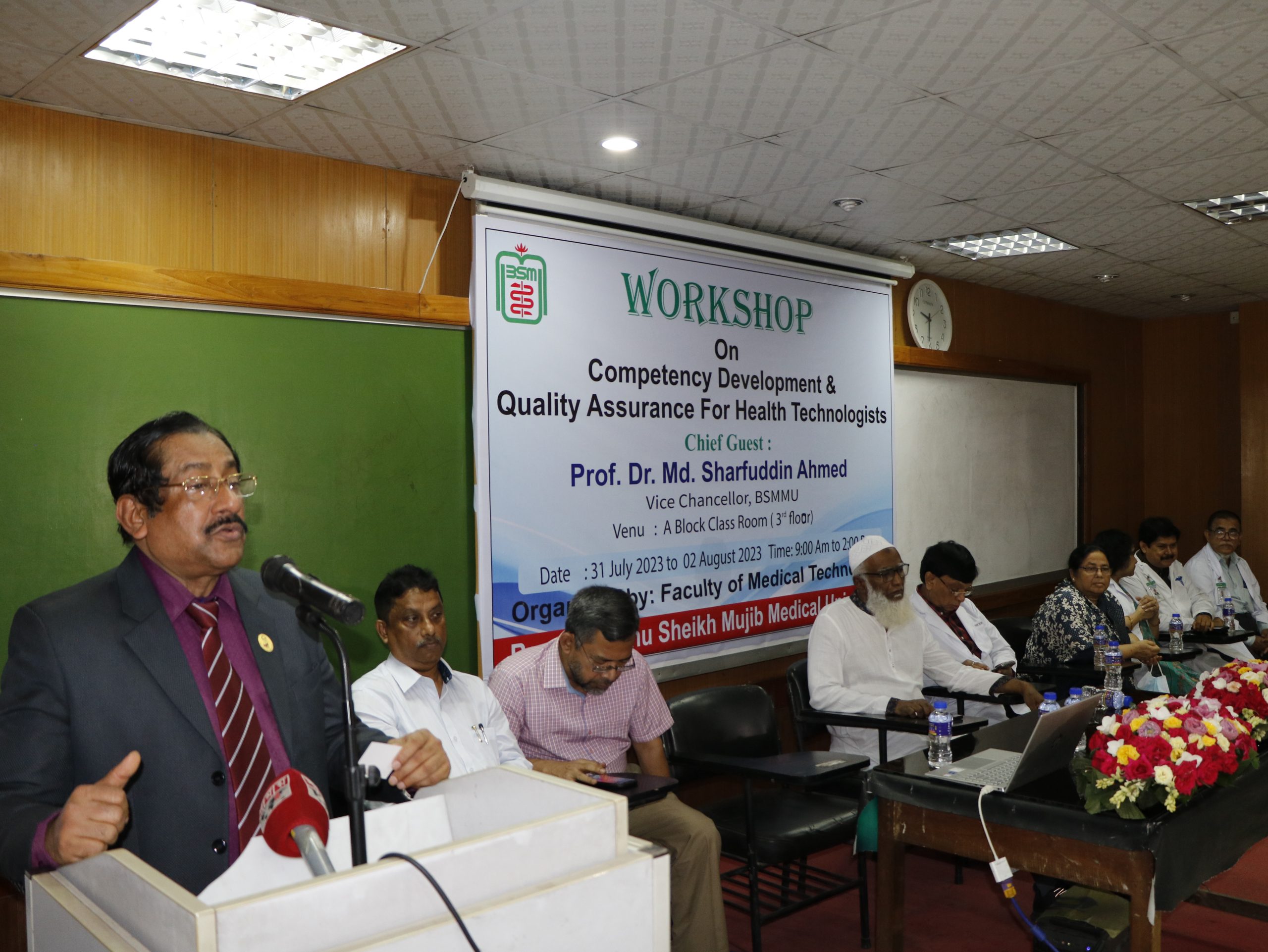 প্রধান অতিথির বক্তব্যে মাননীয় উপাচার্য অধ্যাপক ডা. মোঃ শারফুদ্দিন আহমেদ বলেন, দক্ষতা বৃদ্ধি ও মান নিশ্চিতকরণের জন্য প্রশিক্ষণের বিকল্প নাই। অনেক হাসপাতালের দামি যন্ত্রপাতি বায়োমেডিক্যাল ইঞ্জিনিয়ারদের অভাবে নষ্ট হয়ে যাচ্ছে, সেদিকে দৃষ্টি হবে। মাননীয় উপাচার্য তাঁর বক্তব্যে মেডিক্যাল টেকনোলজিস্টদের উন্নয়নে প্রয়োজনীয় পদোন্নতির ব্যবস্থা, উচ্চতর শিক্ষা বিষয়ক কোর্স চালু করা, বিভিন্ন প্রতিষ্ঠানের সাথে যৌথ উদ্যোগে কাজ করার উপর গুরুত্বারোপ করেন।