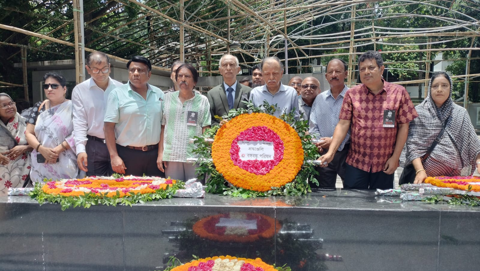 বঙ্গবন্ধু পরিষদের সভাপতি (ভারপ্রাপ্ত) অধ্যাপক ড. আ আ ম স আরেফিন সিদ্দিক এর নেতৃত্বে শ্রদ্ধা নিবেদন পর্বে উপস্থিত ছিলেন সাধারণ সম্পাদক অধ্যাপক আ ব ম ফারুক, যুগ্ম সাধারণ সম্পাদক কাজী রেহান সোবহান, সাংগঠনিক সম্পাদক ড. লিয়াকত হোসেন মোড়ল, এস এম লুৎফর রহমান, ইঞ্জিনিয়ার মাইনুর রহমান, পরিবেশ ও বন সম্পাদক নেছার আহাম্মদ মিঞা, ত্রাণ বিষয়ক সম্পাদক ডা. শাখাওয়াত ইসলাম খোকন, কার্যকরী সদস্য অধ্যাপক ড. চন্দ্রনাথ পোদ্দার, মিজান ইবনে হোসেন ও আনন্দ কুমার সেন। অস্ট্রেলিয়া আওয়ামী লীগের আন্তর্জাতিক বিষয়ক সম্পাদক ও বঙ্গবন্ধু পরিষদ নেতা মোহাম্মদ হোসেন ও সাংস্কৃতিক সম্পাদক আইভি রহমান প্রমুখ। শ্রদ্ধা নিবেদন শেষে এক মিনিট দাড়িয়ে বঙ্গবন্ধুর প্রতি শ্রদ্ধা জানিয়ে নিরবতা পালন করা হয়। বঙ্গবন্ধু পরিষদ ‘বঙ্গবন্ধুকে সপরিবারে হত্যার আন্তর্জাতিক তদন্তের দাবি জানান।