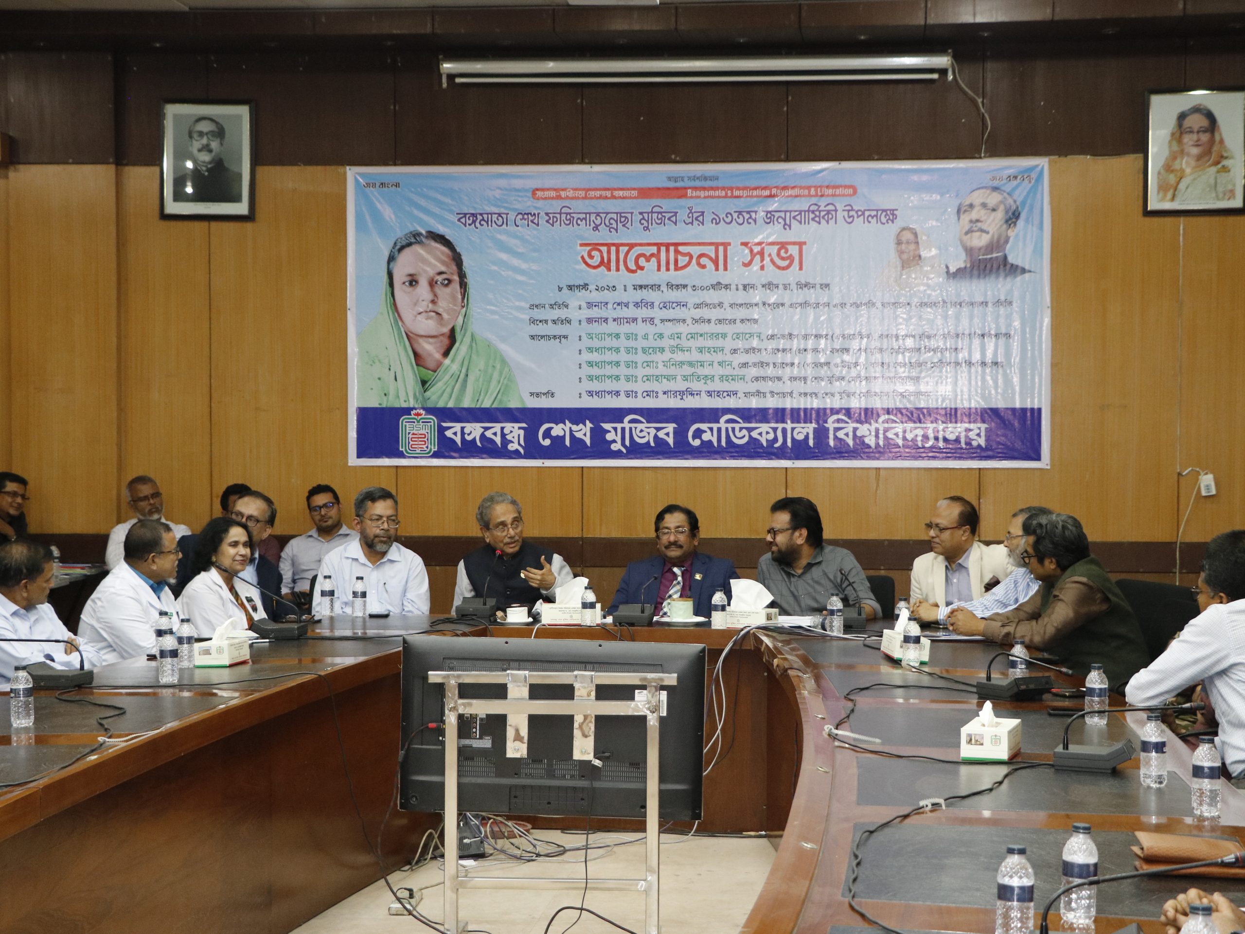 আজ মঙ্গলবার ৮ আগস্ট ২০২৩ইং তারিখ বিকেলে শহীদ ডা. মিল্টন হলে আয়োজিত আলোচনা সভায় সভাপতিত্ব করেন বঙ্গবন্ধু শেখ মুজিব মেডিক্যাল বিশ্ববিদ্যালয়ের মাননীয় উপাচার্য অধ্যাপক ডা. মোঃ শারফুদ্দিন আহমেদ। গুরুত্বপূর্ণ আলোচনা সভায় বিশেষ অতিথি ছিলেন ভোরের কাগজ সম্পাদক ও জাতীয় প্রেসক্লাবের সাধারণ সম্পাদক সিনিয়র সাংবাদিক শ্যামল দত্ত।