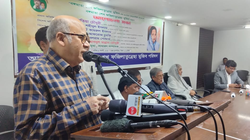 নিজস্ব প্রতিবেদকঃ বঙ্গমাতা শেখ ফজিলাতুন্নেছা মুজিব এর ১৩ তম জন্মবার্ষিকী উপলক্ষে বঙ্গমাতা শেখ ফজিলাতুন্নেছা মুজিব পরিষদের উদ্যোগে আজ ১০ আগস্ট ২০২৩, বৃহস্পতিবার বিকাল ৩.৩০ মিনিটে জাতীয় প্রেসক্লাবের জহুর হোসেন চৌধুরী হলে সংগঠনের সভাপতি অধ্যাপক ড. আবদুল মান্নান চৌধুরীর সভাপতিত্বে বঙ্গমাতা শেখ ফজিলাতুন্নেছা মুজিব স্মরণে এক আলোচনা সভা অনুষ্ঠিত হয়।