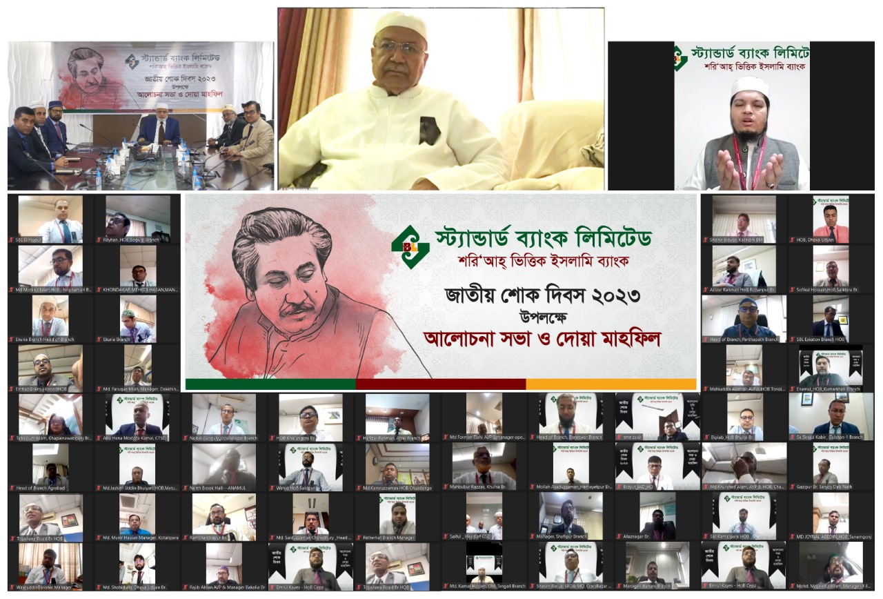 নিজস্ব প্রতিবেদকঃ সর্বকালের সর্বশ্রেষ্ঠ বাঙালি, জাতির পিতা বঙ্গবন্ধু শেখ মুজিবুর রহমান-এর ৪৮তম শাহাদাতবার্ষিকী ও জাতীয় শোক দিবস উপলক্ষে বঙ্গবন্ধু শেখ মুজিবুর রহমান, বঙ্গমাতা শেখ ফজিলাতুন্নেছা মুজিব ও ১৫ই আগস্টের সকল শহিদের আত্মার মাগফেরাত কামনায় আলোচনা সভা ও দোয়া মাহফিলের আয়োজন করেছে স্ট্যান্ডার্ড ব্যাংক ্লিমিটেড।