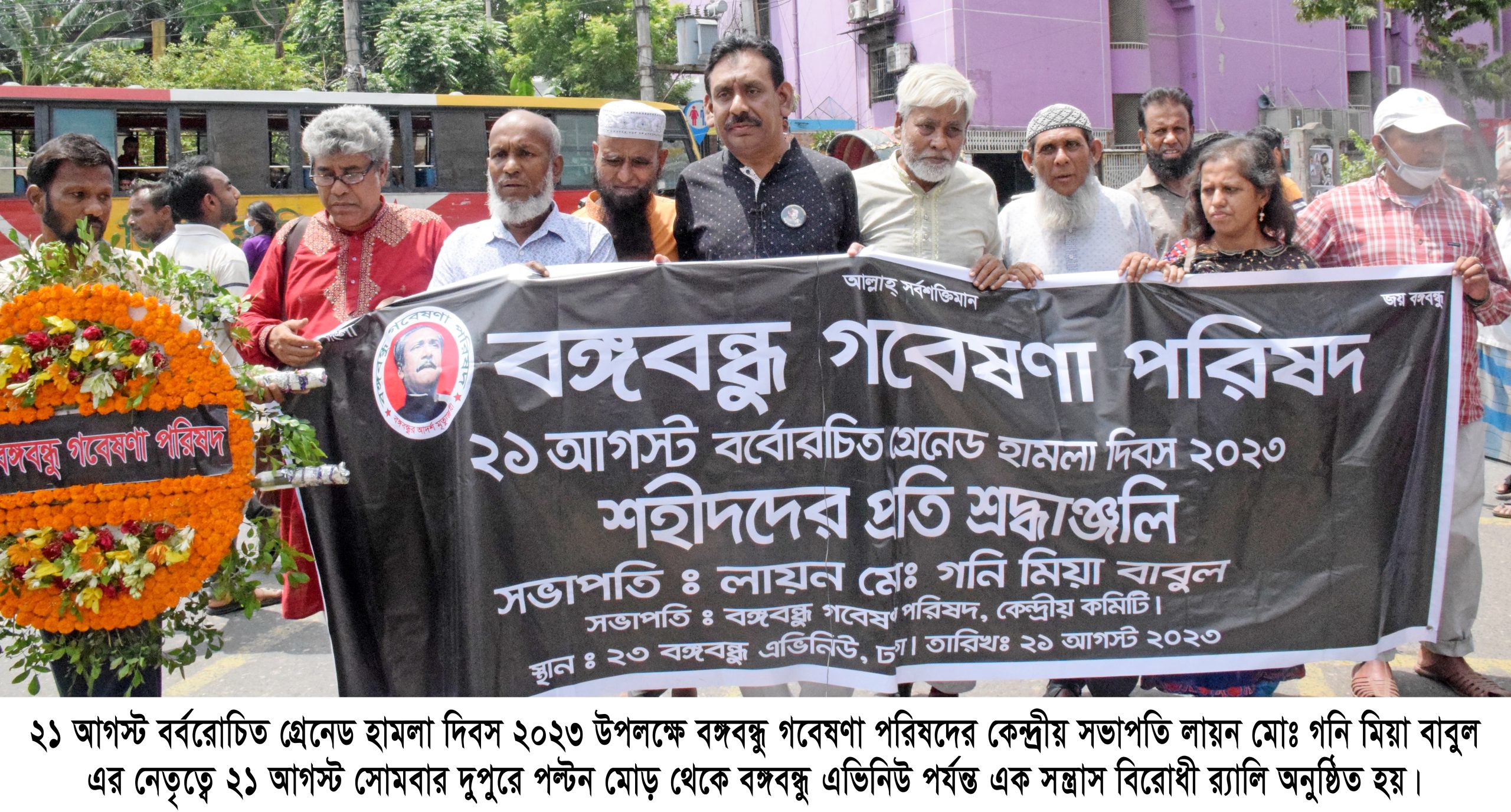 গ্রেনেড হামলা দিবস ২০২৩ উপলক্ষে ২১ আগস্ট সোমবার দুপুরে ২৩ বঙ্গবন্ধু এভিনিউস্থ আওয়ামী লীগ কার্যালয়ের সামনে অস্থায়ী বেদীতে পুস্পাস্তবক অর্পণ ও শ্রদ্ধা নিবেদন করার পর আওয়ামী লীগ কেন্দ্রীয় কার্যালয়ের সামনে আয়োজিত সমাবেশ ও আলোচনা সভায় সভাপতির বক্তব্যে তিনি এসব কথা বলেন। এর পূর্বে পুরানা পল্টন মোড় থেকে বঙ্গবন্ধু এভিনিউ পর্যন্ত এক সন্ত্রাস বিরোধী র‌্যালি অনুষ্ঠিত হয়।