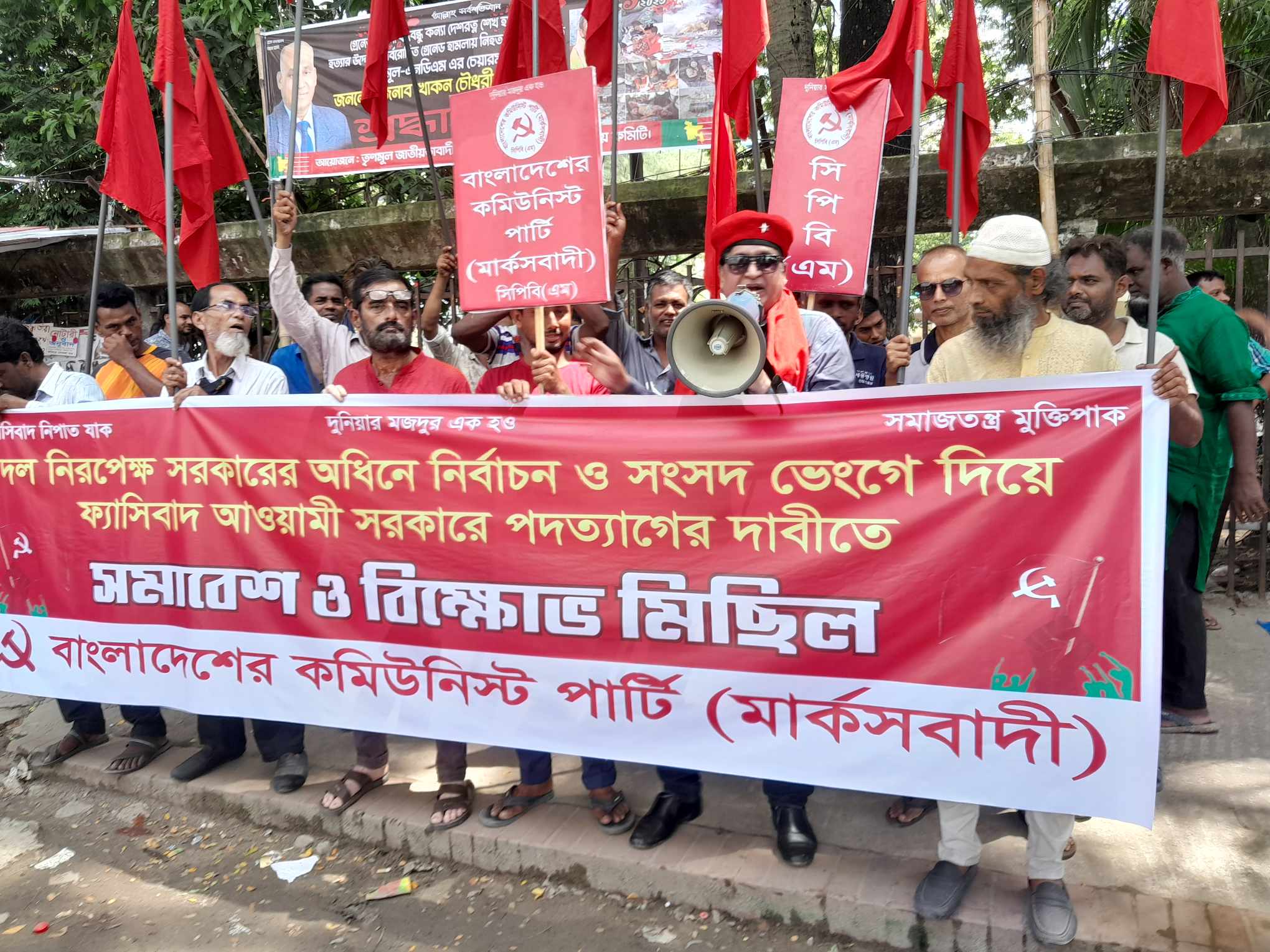 নিজস্ব প্রতিবেদকঃ আজ ২১ আগস্ট সকাল ১১টায় জাতীয় প্রেসক্লাবের সামনে বাংলাদেশের কমিউনিস্ট পার্টি (মার্কসবাদী)—সিপিবি(এম) এর উদ্যোগে স্বৈরাচার আওয়ামী সরকারের পদত্যাগ, সংসদ ভেঙ্গে দিয়ে দল নিরপেক্ষ সরকারের অধীনে নির্বাচনের দাবিতে বিক্ষোভ সমাবেশ ও মিছিল অনুষ্ঠিত হয়।