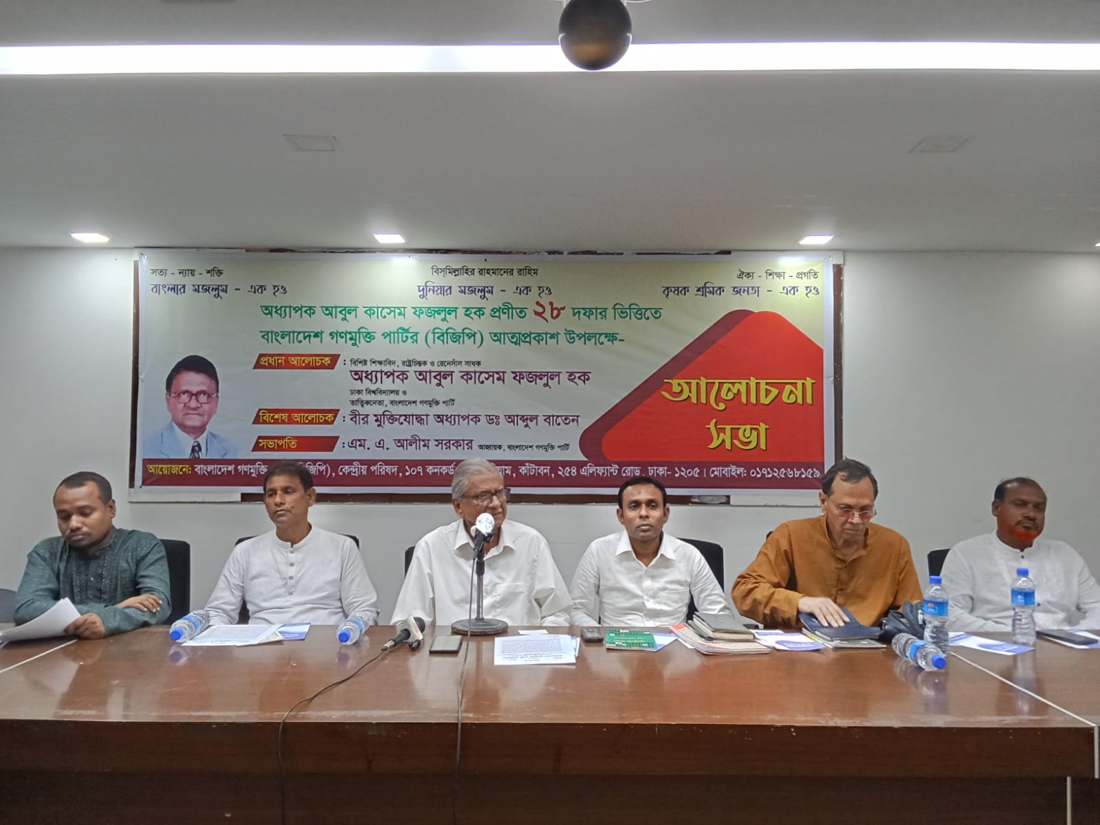 নিজস্ব প্রতিবেদকঃ অদ্য ২৫ আগস্ট সকাল ১০টায় জাতীয় প্রেসক্লাবের জহুর হোসেন চৌধুরী হলে এম এ আলীম সরকারের সভাপতিত্বে বিশিষ্ট শিক্ষাবিদ, রাষ্ট্রচিন্তক, রেনেসাঁস সাধক ও বাংলাদেশ গণমুক্তি পার্টির তাত্বিক নেতা অধ্যাপক আবুল কাশেম ফজলুল হক প্রণীত ২৮ দফার ভিত্তিতে বাংলাদেশ গণমুক্তি পার্টির (বিজিপি) আত্মপ্রকাশ উপলক্ষে আলোচনা সভা অনুষ্ঠিত হয়।