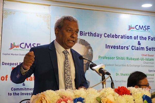 ক্যাপিটাল মার্কেট স্ট্যাবিলাইজেশন ফান্ডের (সিএমএসএফ) এর আয়োজনে মঙ্গলবার (১৫ মার্চ) রাজধানীর একটি হোটেলে আয়োজিত ‘বঙ্গবন্ধু শেখ মুজিবুর রহমানে জন্মবার্ষিকী উদযাপন ও শেয়ারহোল্ডারদের দাবি মিমাংসা’ শীর্ষক অনুষ্ঠানে তিনি এ কথা বলেন।