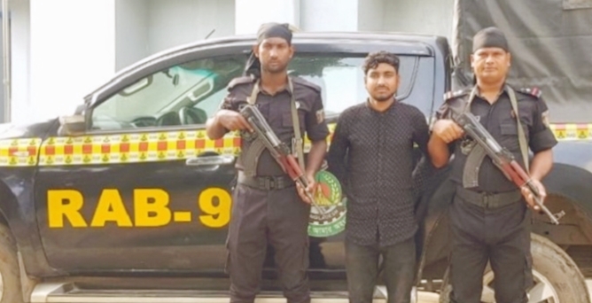 বুধবার (৩১ আগস্ট) রাতে র্যাব-৯, ব্রাহ্মণবাড়িয়ার একটি আভিযানিক দল গোপন সংবাদের ভিত্তিতে উপজেলার হরষপুর রেল স্টেশন বাজার এলাকায় অভিযান চালিয়ে তাকে আটক করে, এবং আটক যুবক মাধবপুর উপজেলার শিবরামপুর এলাকার মো. চাঁন বাদশা মিয়ার ছেলে।