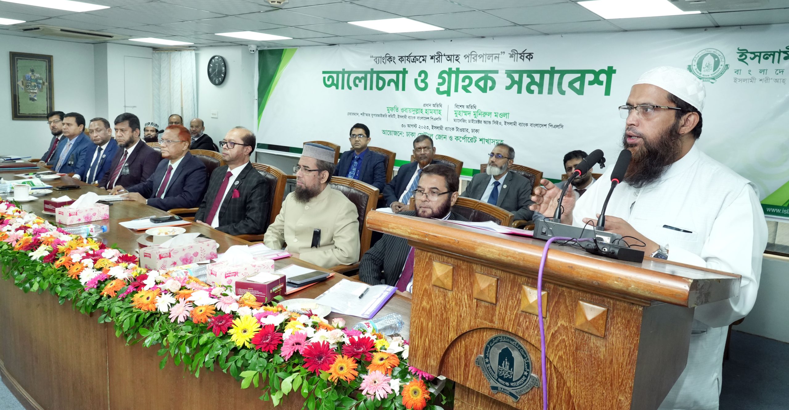 মূল বিষয়ের ওপর আলোচনা উপস্থাপন করেন শরী‘আহ সেক্রেটারিয়েট-এর এক্সিকিউটিভ ভাইস প্রেসিডেন্ট মোঃ শামসুদ্দোহা এবং ধন্যবাদ জ্ঞাপন করেন লোকাল অফিস কর্পোরেট শাখাপ্রধান মোঃ জাকির হোসেন।