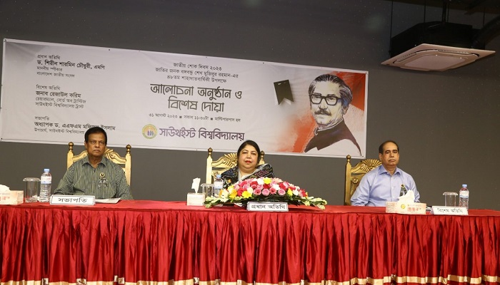 নিজস্ব প্রতিবেদক: সাউথইস্ট বিশ্ববিদ্যালয়ের উদ্যোগে ৩১ আগস্ট আজ বঙ্গবন্ধু শেখ মুজিবুর রহমানের ৪৮তম শাহাদাতবার্ষিকী ও জাতীয় শোক দিবস উপলক্ষে আলোচনা অনুষ্ঠান ও বিশেষ দোয়ার আয়োজন করা হয়। এতে প্রধান অতিথি ছিলেন বাংলাদেশ জাতীয় সংসদের স্পিকার ড. শিরীন শারমিন চৌধুরী।