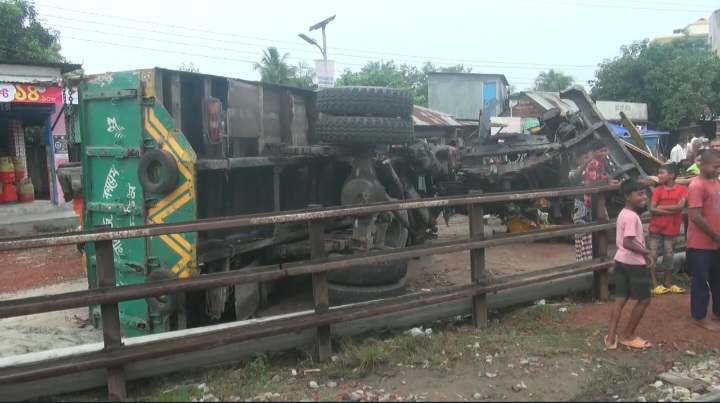 গেইটম্যান সঞ্জু মিয়া জানান, পাট বোঝাই ট্রাকটি রেলক্রসিং পার হওয়ার সময় ট্রাকটি বিকল হয়ে যায়। এ সময় ট্রেন আসতে দেখে আমি লালবাতি সিগন্যাল দিলে ট্রেন চালক যথাসাধ্য গতিরোধ করতে চেষ্টা করে। তারপরও ট্রেনটি বিকল হওয়া ট্রাকটিকে ধাক্কা দিলে ট্রাকটি দুমড়েমুচড়ে লাইন থেকে ছিটকে পড়ে।