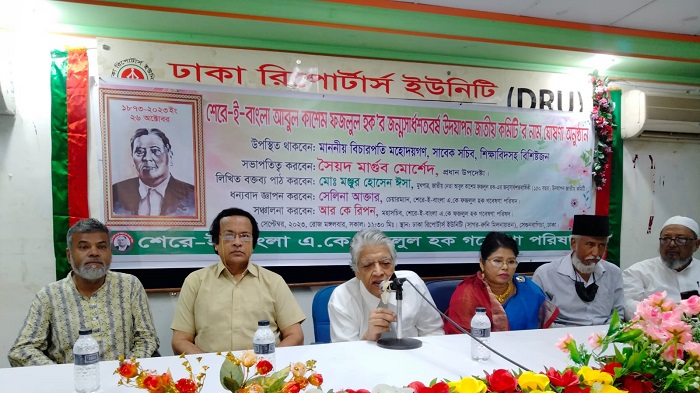 নিজস্ব প্রতিবেদকঃ ৫ই সেপ্টেম্বর ২০২৩ মঙ্গলবার সকাল ১১ টায় শেরে বাংলা আবুল কাশেম ফজলুল হকের ১৫০তম সার্ধশতবার্ষিকী উদযাপনে জাতীয় কমিটি ঘোষণা উপলক্ষে ঢাকা রিপোর্টার্স ইউনিটির সাগর—রুনি মিলনায়তনে আলোচনা সভা অনুষ্ঠিত হয়।