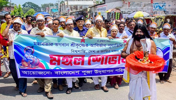 অপরদিকে শ্রীকৃষ্ণের শুভ জন্মাষ্টমী উপলক্ষে জেলা পূজা উদযাপন পরিষদের উদ্যোগে মঙ্গল শোভাযাত্রা ও আলোচনা সভাসহ অন্যান্য কর্মসূচি পালন করা হচ্ছে। মঙ্গল শোভাযাত্রাটি শহরের কালিবাড়ি মন্দির চত্বর থেকে বের হয়ে বিভিন্ন সড়ক প্রদক্ষিণ করে।
