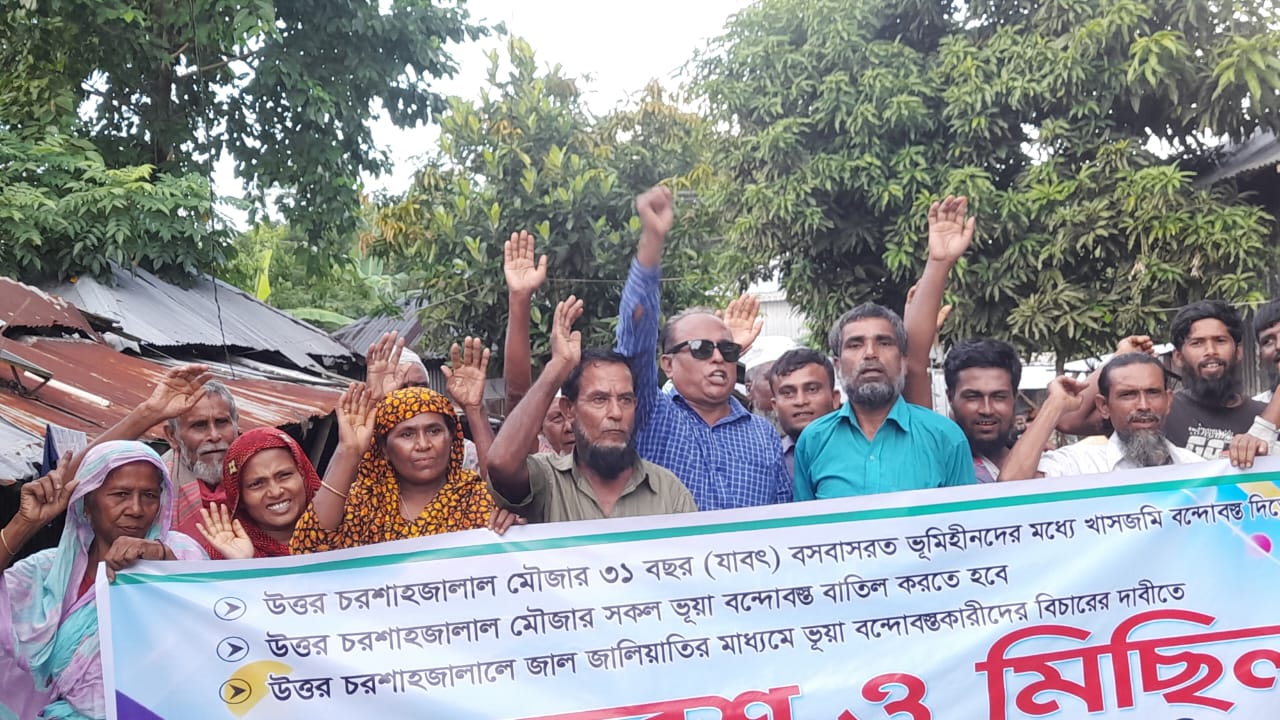 ১) উত্তর চর শাহজালালে খাসজমি ভূয়া বন্দোবস্ত বাতিল করতে হবে।