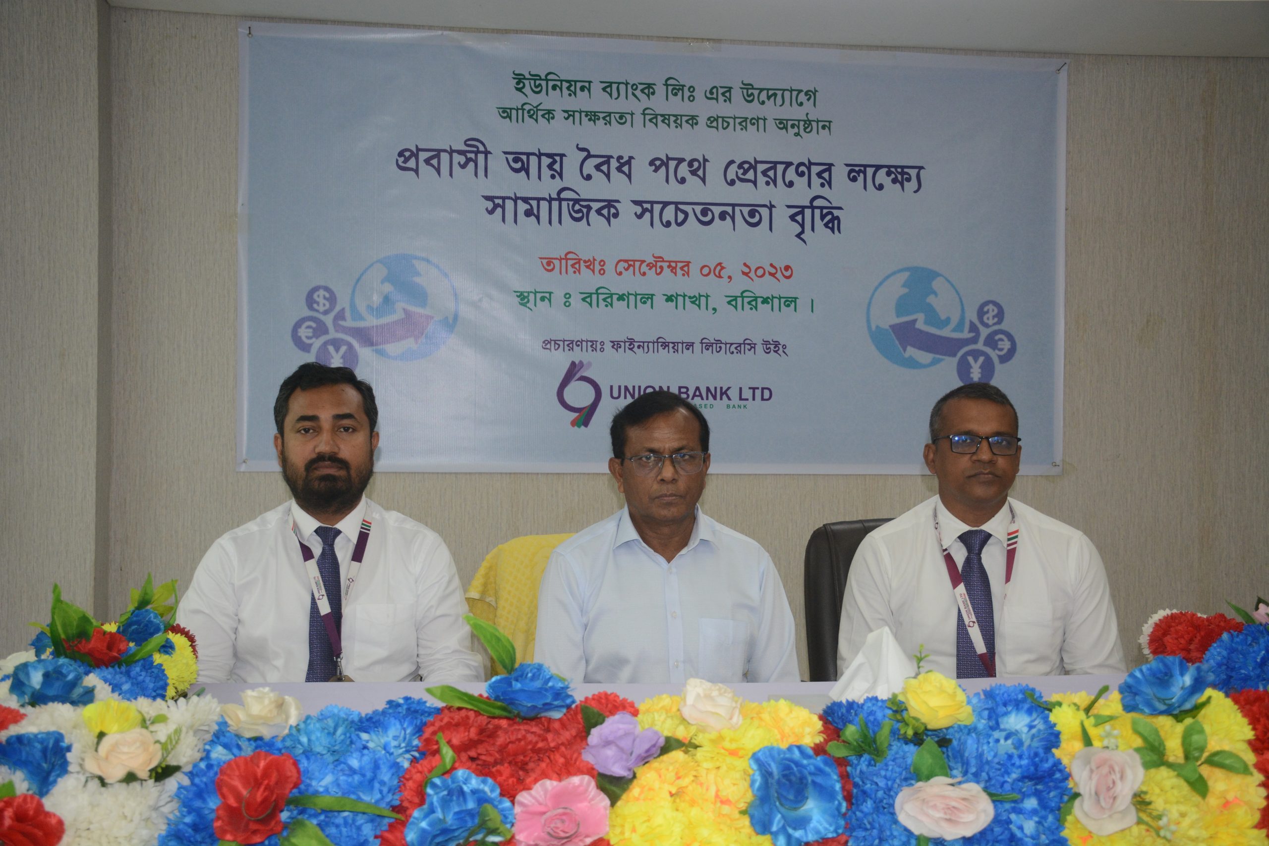 নিজস্ব প্রতিবেদকঃ সম্প্রতি শরী‘আহ ভিত্তিক ইউনিয়ন ব্যাংক লিমিটেডের বরিশাল শাখায় ফাইন্যান্সিয়াল লিটারেসি উইং কর্তৃক আয়োজিত ‘প্রবাসী আয় বৈধ পথে প্রেরণের লক্ষে সামাজিক সচেতনতা বৃদ্ধি’ শীর্ষক আর্থিক স্বাক্ষরতা বিষয়ক প্রচারণা অনুষ্ঠান অনুষ্ঠিত হয়েছে।