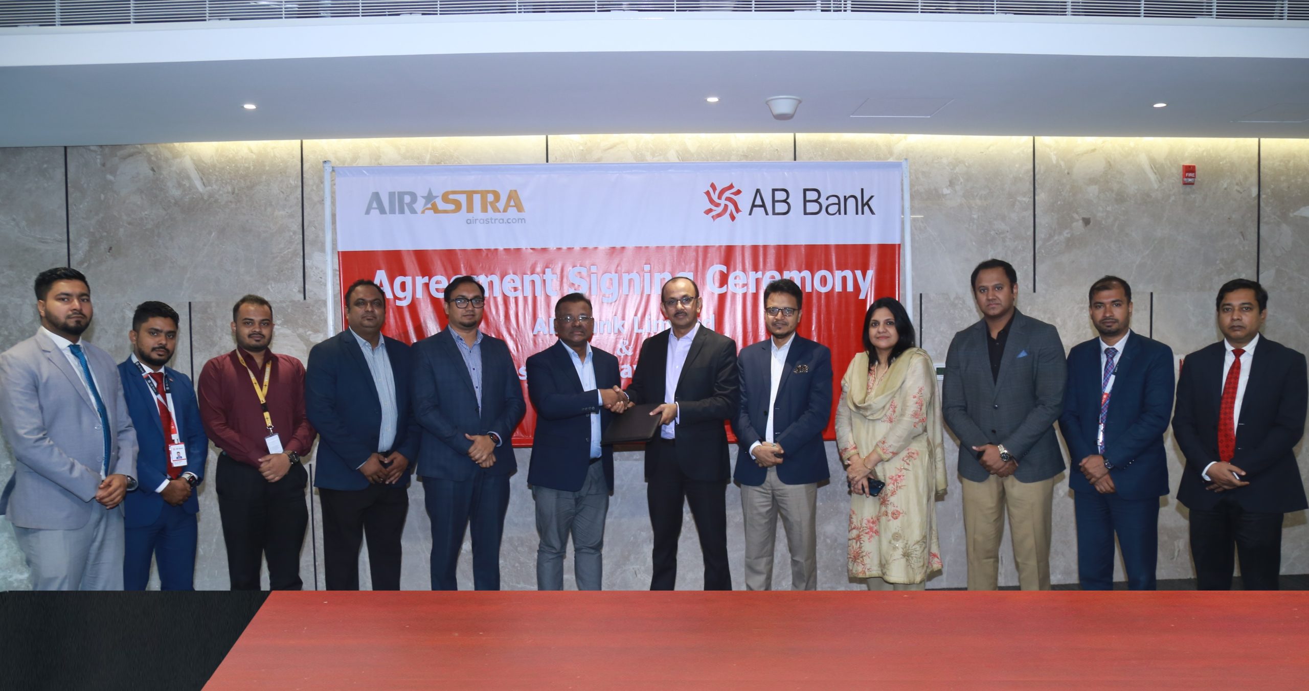 এবি ব্যাংক লিমিটেডের উপ-ব্যবস্থাপনা পরিচালক জনাব সৈয়দ মিজানুর রহমান এবং এয়ার অ্যাস্ট্রার হেড অব মার্কেটিং এন্ড সেলস জনাব মোহাম্মদ মোজাম্মেল হক ভূঁইয়া নিজ নিজ প্রতিষ্ঠানের পক্ষে এ চুক্তিতে স্বাক্ষর করেন।