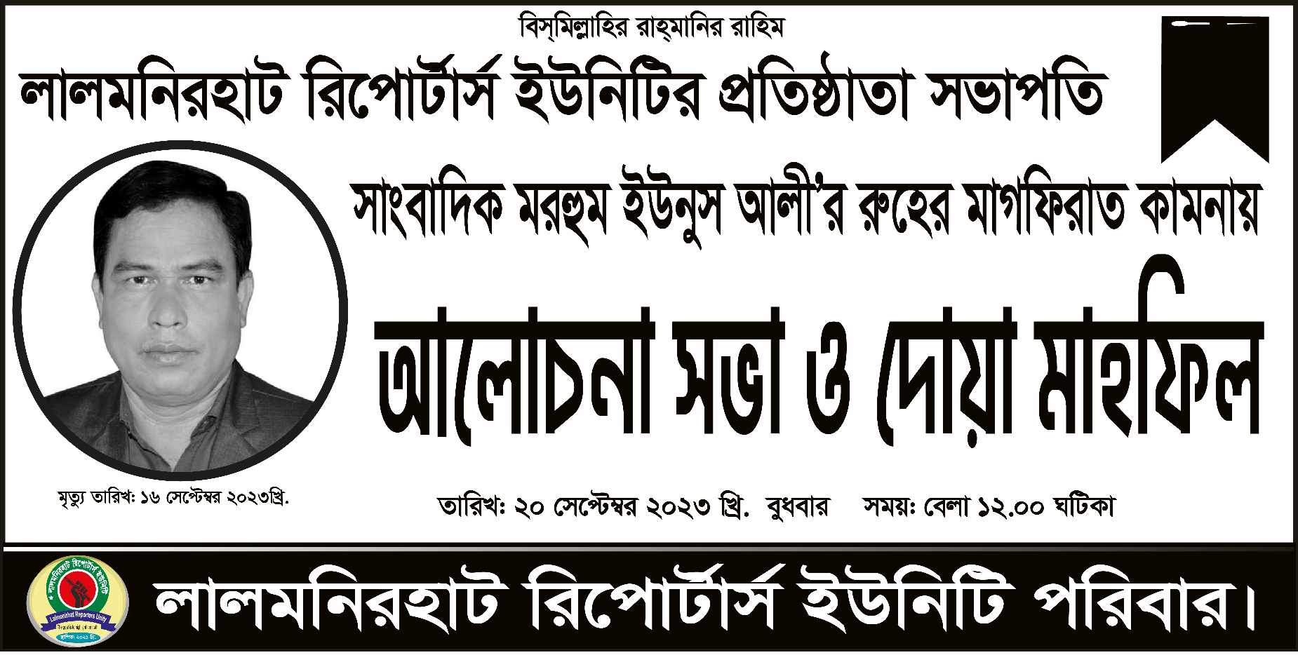 উল্লেখ্য যে গত শনিবার লালমনিরহাটে জেলা জাতীয় পার্টির দ্বি বার্ষিক সম্মেলন এর নিউজ শেষে বাড়িতে ফেরার পথে ট্রাকের ধাক্কায় নিহত হয় ইউনুস আলি।