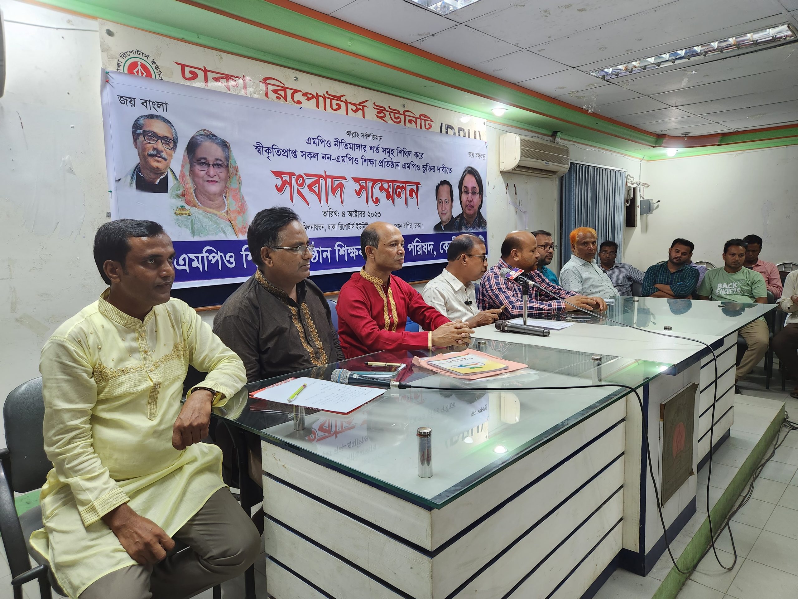 নিজস্ব প্রতিবেদকঃ আজ ৪ অক্টোবর ২০২৩ (বুধবার) সকাল ১১ টা ৩০ মিনিটে ঢাকা রিপোর্টার্স ইউনিটির সাগর-রুনি মিলনায়তনে নন-এমপিও শিক্ষা প্রতিষ্ঠান শিক্ষক-কর্মচারী পরিষদের উদ্যোগে এমপিও নীতিমালার শর্ত সমূহ শিথিল করে স্বীকৃতিপ্রাপ্ত সকল নন-এমপিও শিক্ষাপ্রতিষ্ঠান একযোগে এমপিওভুক্তির দাবিতে সংবাদ সম্মেলন অনুষ্ঠিত হয়।