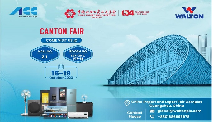 ক্যান্টন ফেয়ারের প্রথম ধাপের ৫-দিনব্যাপী মেলায় প্রদর্শিত হবে ‘মেড ইন বাংলাদেশ’ ট্যাগযুক্ত ইউরোপিয়ান এসিসি ব্র্যান্ড ও বাংলাদেশী ইলেকট্রনিক্স জায়ান্ট ওয়ালটন ব্র্যান্ডের আন্তর্জাতিকমানের ইলেকট্রনিক্স ও ইলেকট্রিক্যাল পণ্যসমূহ। এর মধ্যে রয়েছে বিশ্বের লেটেস্ট প্রযুক্তিতে তৈরি ব্যাপক বিদ্যুৎ সাশ্রয়ী অত্যাধুনিক ফিচারের রেফ্রিজারেটর, ভয়েস কন্ট্রোল ও ডিজিটাল ডিসপ্লে সমৃদ্ধ এয়ার কন্ডিশনার, রিচার্জেবল ফ্যান, সিলিং ফ্যানসহ বিভিন্ন হোম ও ইলেকট্রিক্যাল অ্যাপ্লায়েন্সেস।